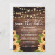 Rustic Wood and Sunflower themed save the date invitations in a sans serif and calligraphic font for that vintage and playful yellow vibe of the wedding. More products on this collection.