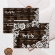 Request a response from your guests in rustic elegance with this beautifully designed RSVP card. Featuring a dark wood plank background and delicate white lace floral elements, this reply card perfectly complements barn, country, outdoor, and farmhouse wedding themes. Fully customizable with your wedding reply deadline and guest response options. Pair it with matching invitations and inserts for a cohesive wedding stationery suite.