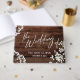 This warm, rustic design features a modern handwriting font that was used to create a graphic reading "The Wedding of". The background was covered in a brown wooden image and accented with images depicting baby's breath. Just perfect for your barn, casual, or country wedding. Use the template fields to add your personal details. // 151 //