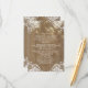 Rustic barn wood elegant string lights and lace wedding insert with directions, reception details, accommodations and other information for guests