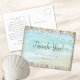 This rustic wood thank you postcard makes it easy to let your guests know how grateful you were for their presence on your special day. The weathered wood frames an aqua blue beach scene, with string lights on top.