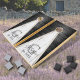 Rustic Wood Black and White Monogram Triangle Cornhole Set