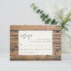 Rustic Wood Black White Ivory Elegant Wedding RSVP Card