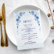 Rustic Wood Blue Floral Elegant Wedding Menu