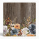 Rustic wood with beautiful navy blue, rust, and white watercolor floral and foliage, fall/autumn, country-style custom cookbook personalized with your name on the front and the spine.