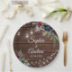 Rustic Wood Burgundy Floral Lights Wedding Paper Plates