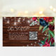 Rustic Wood Burgundy Floral Lights Wedding QR Code Enclosure Card