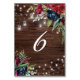 Rustic Wood Burgundy Floral Lights Wood 6 Table Number