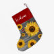 Rustic Wood Burgundy Red Gold Sunflower Name Small Christmas Stocking