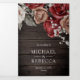Rustic Wood Burgundy Red Roses Photo Wedding Tri-Fold Invitation