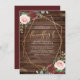 Rustic Wood Burgundy Roses Gold Geometric Wedding Invitation