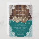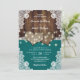Rustic Wood Burlap Lace Teal Wedding Invitations