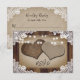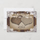 Romantic rustic country wedding RSVP cards inspired by rustic wood, burlap and lace. Easily personalize these vintage rustic country wedding response cards featuring burlap hearts on a distressed burlap and rustic wood background adorned with string lights and white floral lace.