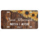 Rustic Wood Burlap Sunflower Wedding Just Married License Plate
