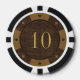 Old west rustic casino style wood-look $10 poker chips with customizable value and sides. Retro style numbers with stamped effect. Add your name or personalized text to create you own unique vintage playing chip. Perfect gift for the cowboy or riverboat gambling man on your list. Not made of real wood -- image is printed on ceramic. More unique masculine novelty gifts for men, poker players, casino gamblers, card sharks, executives available in store.