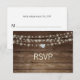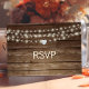 Having that outdoor rustic / country wedding theme? Beautiful wedding RSVP cards with twinkle lights and two mason jars with faux diamond hearts. Wood panel barn background. Font, size and color of text can be changed. Back of card has both bride and groom's names. Contact designer for help.