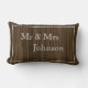 Make Your Own Couple Pillow with your names and wedding date in beautiful script white letters on a dark rustic wood background. Stylish and classy and makes a great gift for weddings, anniversaries or Christmas.