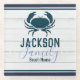 Rustic and elegant white wood design. Crab stamp overlay solid graphic. Custom family name in bold sans serif font and chic script family typography. All text is adjustable. Beautiful design for beach house, vacation home, boat, or nautical themed home decor.