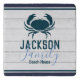 Rustic and elegant white wood design. Crab stamp overlay solid graphic. Custom family name in bold sans serif font and chic script family typography. All text is adjustable. Beautiful design for beach house, vacation home, boat, or nautical themed home decor.