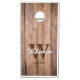 Personalized Monogram & Family Name Outdoor Game. Elevate your backyard fun with this personalized rustic wood-style cornhole set, featuring a large monogram initial, custom family name, and "EST. 20XX" detail. Perfect for weddings, family reunions, housewarming, or any outdoor gathering, this classic lawn game adds a personalized touch to your festivities. The realistic woodgrain design offers a warm, vintage farmhouse vibe, while the sturdy construction ensures years of play. Customize with your family name and established date to make it truly yours!