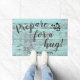 Welcome your guests with this fun script typography rustic door mat design personalized with a name and "Prepare for a hug" message. Fill in the text field with a family name, remove the name or click customize to select a font style, size, and color you prefer.
