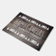 Cute, personalized rustic RV camping decor doormat for rvers, retired couples, and campers- Distressed, rustic wood look doormat reads 'Happy Campers' in handwritten looking letters with a text template for adding family name below in whimsical lettering. With a cute, white cartoon border at the top and bottom of motorhome RVs and pine trees. Against a background of darkened, rustic, distressed wood boards. Great couples retirement gift, too. Would look right at home in front of an RV or cozy log cabin.