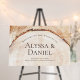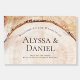 The classic typography used on the sign adds a timeless and sophisticated touch, enhancing the overall aesthetic. The rustic background creates a cozy and welcoming atmosphere, setting the tone for your wedding celebration.