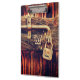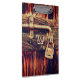 Rustic, dark stained wood door embellished with an antique, brass lock and bolt. Rustic, richly colored and handsome. Personalize if you wish.