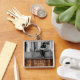 Rustic Wood & Fairy Lights Personalized Photo Keychain