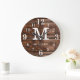Rustic Wood Family Name Large Numbers Monogram Clock