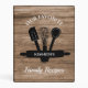 Personalized recipe book binder to keep your favorite family recipes . The rustic wood texture background with baking utensils makes the cookbook binder a keepsake holiday gift for family.