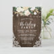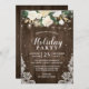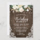 Rustic Wood Floral String Lights Holiday Party Invitation