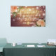 Wedding Banner Templates - Elegant Gold Script with Peach White Roses Floral and String Lights on Rustic Wood Background.