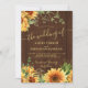 Rustic country yellow golden sunflowers botanical greenery budget affordable all in one brown wood wedding invitation with custom photo, QR code to website, and online rsvp featuring a chic handwriting faux gold calligraphy script. +++++ Suitable for rustic modern summer or autumn fall garden or outdoor backyard farmhouse barn weddings.