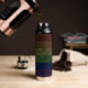 Rustic and dark, this quality water bottle is stunning and represents all the colors of the Rainbow Pride Flag. With alternating stripes in a faux wood grain pattern, all the colors of the Rainbow Pride flag are represented, including red, orange, yellow, green, blue and violet. This would be a nice gift for an ally, friend or member of the Queer Community.