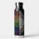 Rustic and dark, this quality water bottle is stunning and represents all the colors of the Rainbow Pride flag combined with the Trans Pride Flag and the colors black and brown representing queer people of color. With alternating stripes in a faux wood grain pattern, this Progress Pride Flag honors inclusion and understanding. This would be a nice gift for an ally, friend or member of the Queer Community.