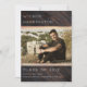 Dark wood photo graduation announcement with printed white text. Add son's photo to the center part of this flat card. His name is printed in large letters at the top with "Class of [year]" below. Also include the name of his high school (or college) and where he will attend school in Fall.