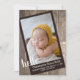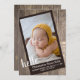 Share your happy news with this stylish introduction for family and friends featuring a rustic wood photo theme. Add your sweet newborn's photos to this template and customize with your details! This beautiful, barn wood birth announcement features a full portrait photo with bold text "hello" headline that can be customized to say what you like (try "welcome" or "meet")! Baby's name and birth stats can be personalized under the photograph. On the back side, there is a bonus photo and signature space to personalize!