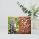 Modern Brush Script, Rustic Wood, String Lights with Mason Jars, Save The Date Engagement Couple Photo Postcard