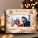 Rustic Wood Jingle Bells Merry Christmas Holiday Etched Frames. Rustic holiday design with a wood texture and Festive jingle bells. The text "Merry Christmas" and family name is fully customizable. Great Christmas gift idea for your friends and family and perfect Christmas holiday decor for your home.