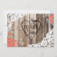 Rustic wood with white lace and heart etching and baby's breath and coral hydrangea flowers thank you card.
