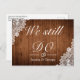 Wedding anniversary "We Still DO" invitation postcard. Rustic style with wood planks background and white lace decor. More items are available in this style in our store. You can edit the design further, change colors, fonts and add extra text by clicking "customize further" link.