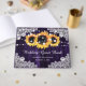 Complement your purple rustic wedding party with this floral wedding guest book featuring sunflowers on a rustic wood background adorned with white floral lace and string lights. Matching items available.
