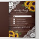 Amaze your guests with this rustic all in one wedding invite featuring beautiful white lace and sunflowers with mason jar on a vintage barn wood background with detachable RSVP card. Simply add your event details on this easy-to-use template and adorn this card with your favorite photo to make it a one-of-a-kind invitation.