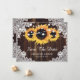 Custom rustic sunflower wedding save the date cards featuring sunflowers against a rustic wood background adorned with white floral lace and string lights. Our rustic floral wedding save the date card is perfect for a rustic country, or barn wedding party inspired by sunflower flowers.