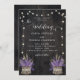 Rustic Wood Lavender Wheat String Lights Wedding Invitation