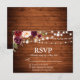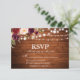 Rustic Wood Lights Burgundy Floral Wedding RSVP Card
