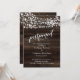 This design features an elegant script font with swirls and flourishes used to create a graphic reading "postponed" Behind the text I've placed a dark brown rustic wooden background and over the top are images that simulate clusters of twinkling bright light strings. It is at once casual and festively elegant. Use the template to add your personal details and feel free to change my wording as needed. // 99 //