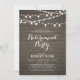 Celebrate your special day with this rustic retirement party invitation! This design features stylish script typography and string lights on a rustic wood background. Perfect for a garden party, barn party, or fall/autumn parties.