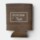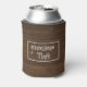 Rustic wedding themed can cooler, done a dark stained wood board look. Personalize the white text for each wedding party member. Perfect gift idea for groomsman and bridesmaids.